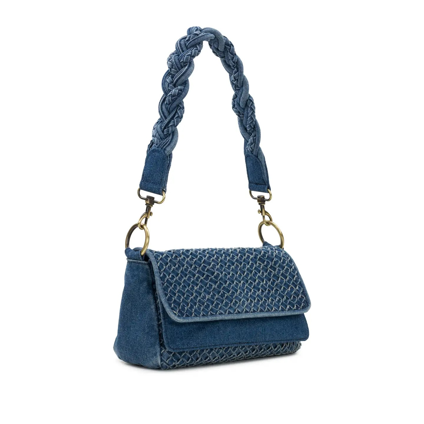 Crafted from high-quality washed denim, the Madalina Denim Crossbody blends modern style with practicality. Its woven design and removable top handle offer versatility while adding a touch of texture. Stay hands-free and on-trend with this must-have accessory.