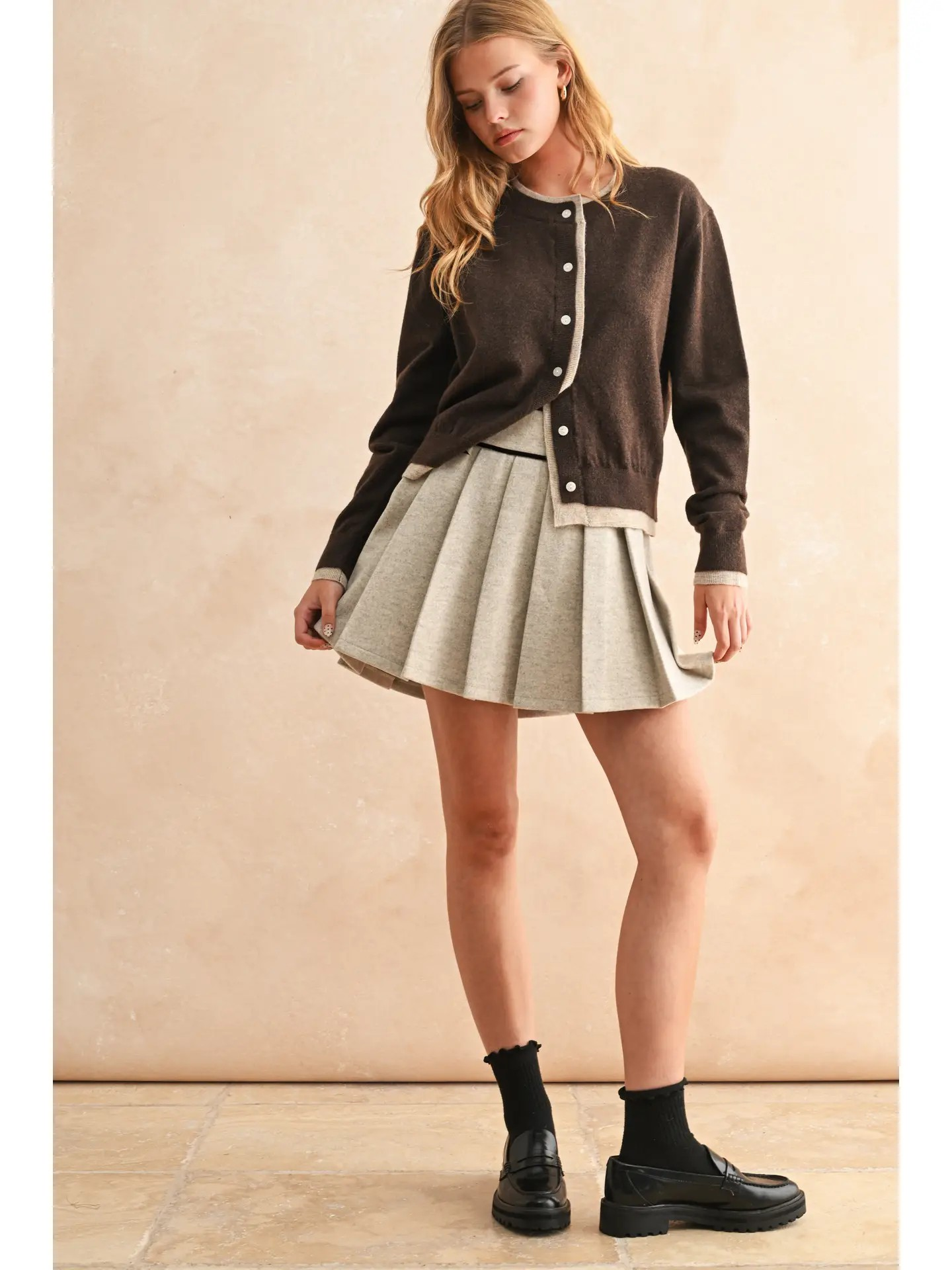 Expertly crafted, the Mischa Accordion Velvet Trim Skirt is a mini skirt with a unique accordion style and luxurious velvet trim. The delicate bows add a touch of sophistication to this stylish piece. Perfect for adding a touch of elegance to any outfit.